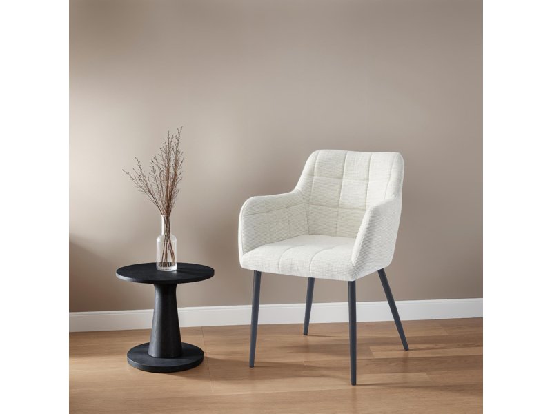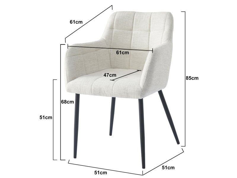 Erleben Sie Komfort und Stil mit dem Bronco-Stuhl von Livingfurn, komplett mit bequemer Sitzfläche, halbhoher Rückenlehne und Armlehnen. Das markante Design zeichnet sich durch dekorative Steppnähte in Quadratform aus, die ein Karomuster erzeugen. Das stabile Untergestell mit schwarzer Pulverbeschichtung macht diesen Sessel nicht nur optisch ansprechend, sondern auch langlebig und modern. Verleihen Sie Ihrem Interieur mit diesem wunderschönen Stuhl einen Hauch zeitgenössischen Flairs.