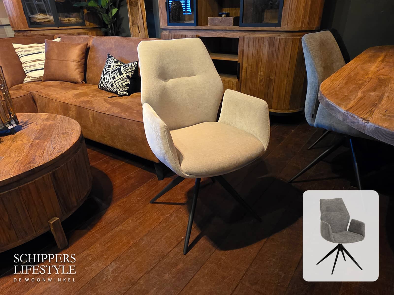 Der Stuhl Paula ist in drei Farben erhältlich: Anthrazit, Leber oder Taupe.