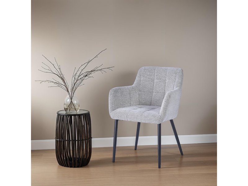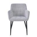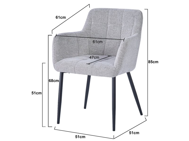 Erleben Sie Komfort und Stil mit dem Bronco-Stuhl von Livingfurn, komplett mit bequemer Sitzfläche, halbhoher Rückenlehne und Armlehnen. Das markante Design zeichnet sich durch dekorative Steppnähte in Quadratform aus, die ein Karomuster erzeugen. Das stabile Untergestell mit schwarzer Pulverbeschichtung macht diesen Sessel nicht nur optisch ansprechend, sondern auch langlebig und modern. Verleihen Sie Ihrem Interieur mit diesem wunderschönen Stuhl einen Hauch zeitgenössischen Flairs.