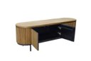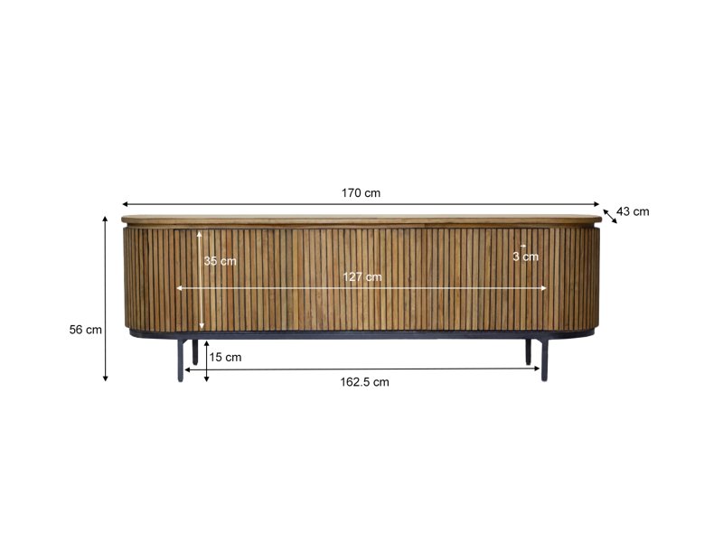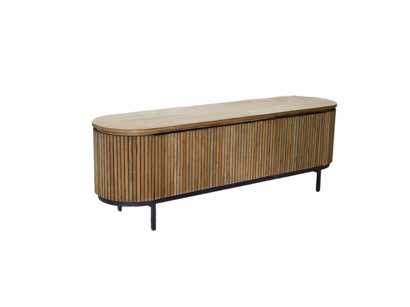 Entdecken Sie die raffinierte Eleganz der Schränke der Livingfurn-Kollektion Lausanne, einer luxuriösen Schrankserie aus langlebigem Teakholz, die mit einem eleganten schwarzen Stahlsockel ausgestattet ist. Charakteristisch für diese Kollektion sind die ovale Form und das Zusammenspiel der Linien, kombiniert mit dem natürlichen Aussehen des Teakholzes und den grifflosen Türen, die sich nahtlos in das Design einfügen. Diese schlichte Ausführung schafft einen minimalistischen Look, der der natürlichen Schönheit des Teakholzes voll gerecht wird.