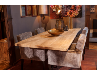 Voor deze unieke teakhouten eettafel bent u bij Schippers Lifestyle aan het juiste adres! Het tafelblad is gemaakt van gerecycled teak en heeft een bladdikte van ongeveer 5 cm. Dit authentieke meubelstuk is een eyecatcher in uw interieur! Verkrijgbaar in verschillende afmetingen en met 2 verschillende metalen onderstellen, namelijk een u-vorm en x-vorm.