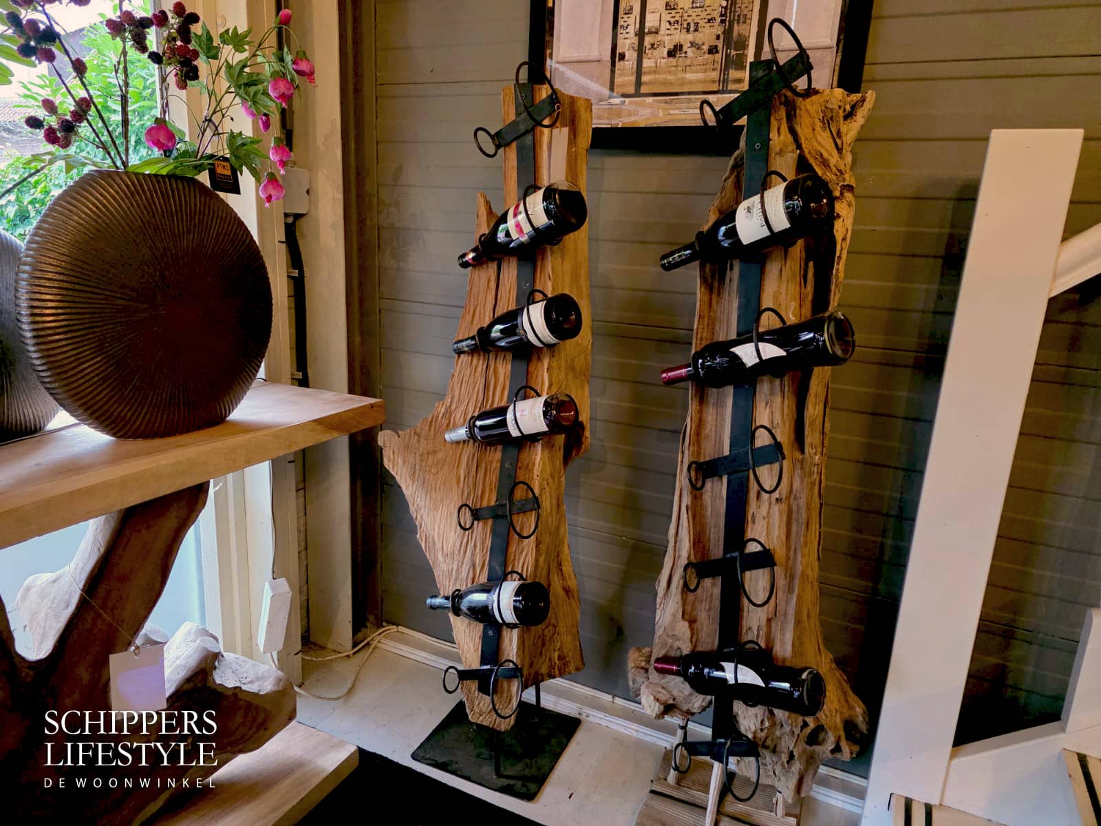 Verleihen Sie Ihrem Interieur einen Hauch von Natur und Eleganz mit diesem charaktervollen Weinregal, das Handwerkskunst, Design und Funktionalität vereint.