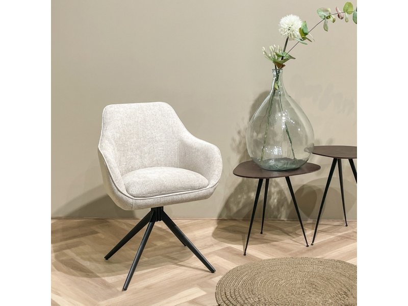 Ontdek de Thomas draaibare stoel van Livingfurn, een eigentijdse eetkamerstoel met modern design. Gemaakt van stof met ribbelafwerking, biedt de stoel een aangename textuur. Het slanke kruispootontwerp geeft een stijlvol contrast. De royale zitting en ergonomisch gevormde arm- en rugleuningen zorgen voor weelderig comfort. Het handige handvat aan de achterzijde biedt gebruiksgemak. Ervaar stijl, comfort en functionaliteit met de Thomas Draaibare Armstoel.