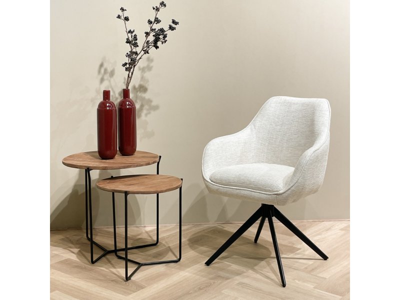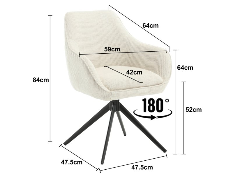 Ontdek de Thomas draaibare stoel van Livingfurn, een eigentijdse eetkamerstoel met modern design. Gemaakt van stof met ribbelafwerking, biedt de stoel een aangename textuur. Het slanke kruispootontwerp geeft een stijlvol contrast. De royale zitting en ergonomisch gevormde arm- en rugleuningen zorgen voor weelderig comfort. Het handige handvat aan de achterzijde biedt gebruiksgemak. Ervaar stijl, comfort en functionaliteit met de Thomas Draaibare Armstoel.