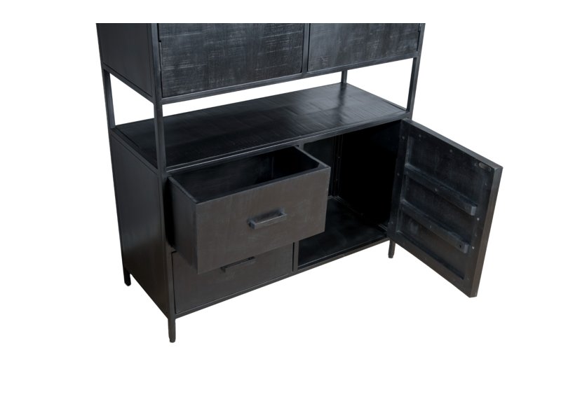 Ervaar de onderscheidende stijl en kracht van de kasten uit de Kala Collectie van Livingfurn. Met een strak design, karaktervolle afwerking en tijdloze kleur, ademt deze collectie elegantie. Vervaardigd uit mangohout met robuust zwart staal, straalt elk meubelstuk klasse uit. Het mangohout is zorgvuldig behandeld met een beschermende zwarte finish voor duurzame pracht.