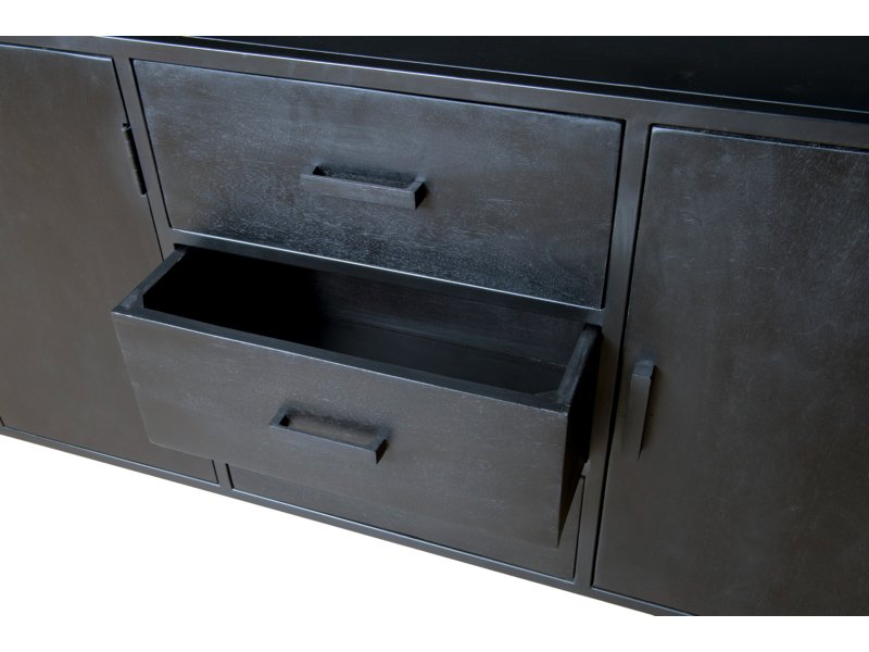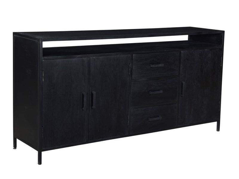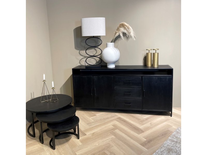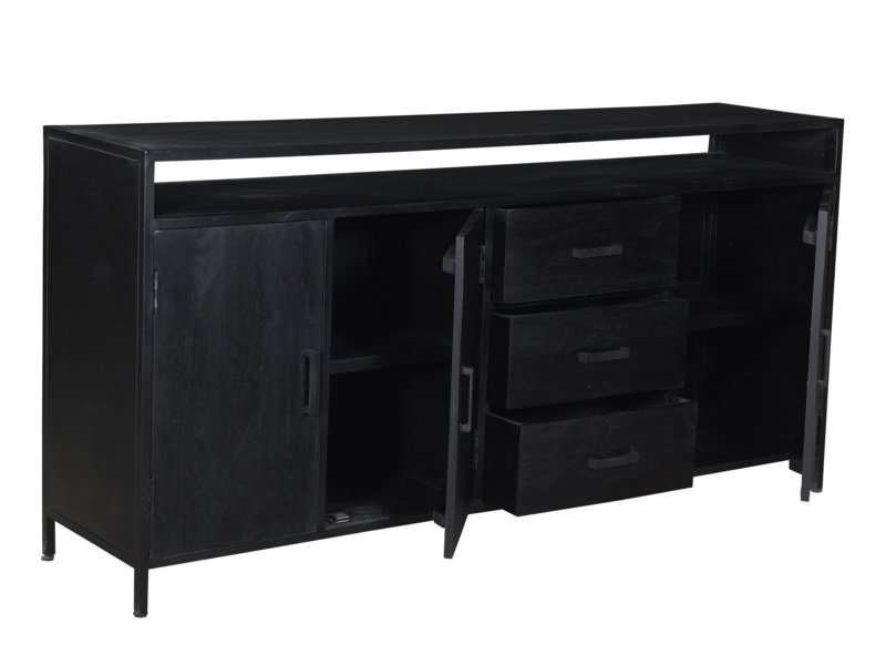 Ervaar de onderscheidende stijl en kracht van de kasten uit de Kala Collectie van Livingfurn. Met een strak design, karaktervolle afwerking en tijdloze kleur, ademt deze collectie elegantie. Vervaardigd uit mangohout met robuust zwart staal, straalt elk meubelstuk klasse uit. Het mangohout is zorgvuldig behandeld met een beschermende zwarte finish voor duurzame pracht.