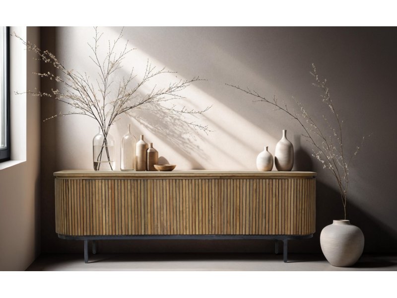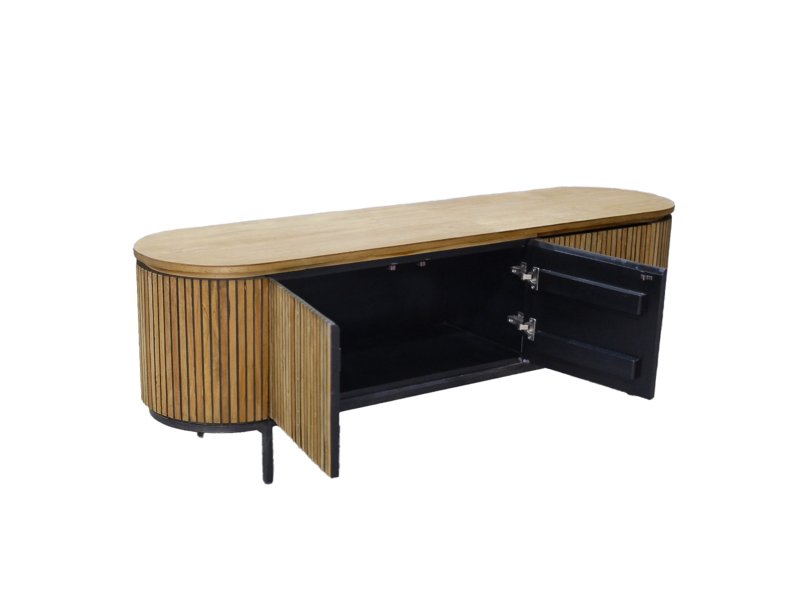Ontdek de verfijnde elegantie van de kasten uit de Lausanne collectie van Livingfurn, een luxueuze kastenlijn vervaardigd uit duurzaam teakhout en voorzien van een slank zwart stalen onderstel. Kenmerkend voor deze collectie is de ovale vorm en het lijnenspel, gecombineerd met de natuurlijke uitstraling van het teakhout en de greeploze deuren die naadloos opgaan in het ontwerp. Deze strakke afwerking zorgt voor een minimalistische look waarbij de natuurlijke schoonheid van het teakhout volledig tot zijn recht komt.