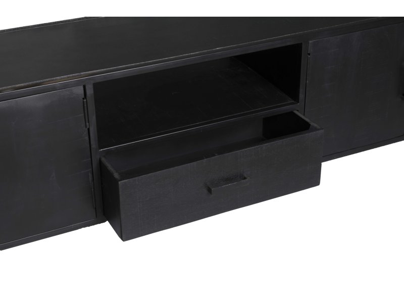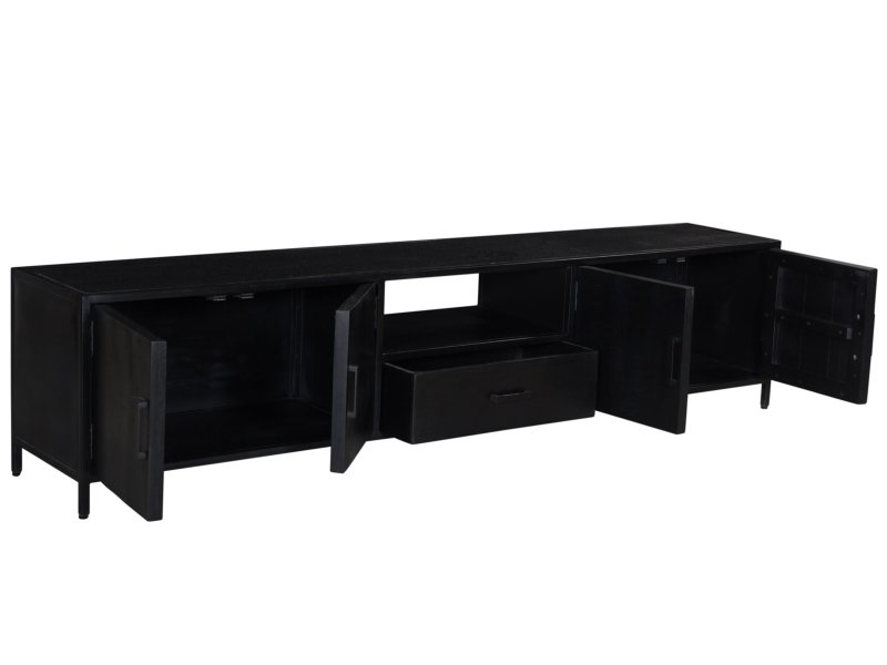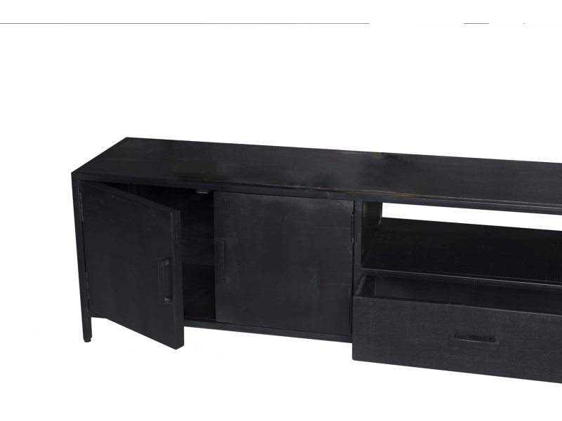 Ervaar de onderscheidende stijl en kracht van de kasten uit de Kala Collectie van Livingfurn. Met een strak design, karaktervolle afwerking en tijdloze kleur, ademt deze collectie elegantie. Vervaardigd uit mangohout met robuust zwart staal, straalt elk meubelstuk klasse uit. Het mangohout is zorgvuldig behandeld met een beschermende zwarte finish voor duurzame pracht.
