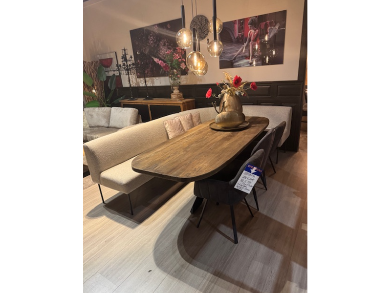 Deze teak houten eettafel met industriële uitstraling is een échte eyecatcher in uw interieur! Maak kennes met eettafel 'Freddy'!